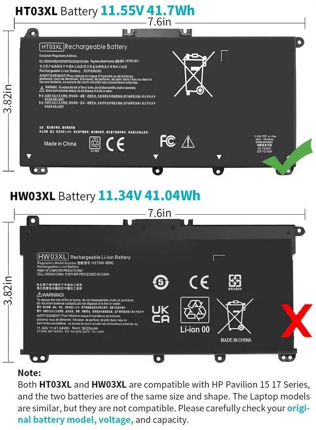 Note: Both HT03XL and HW03XL are compatible with HP Pavilion 15 17 Series. But HT03XL Battery is not compatible with HW03XL ^^