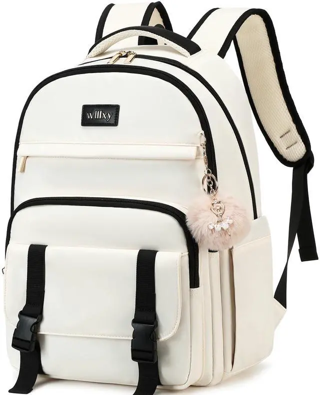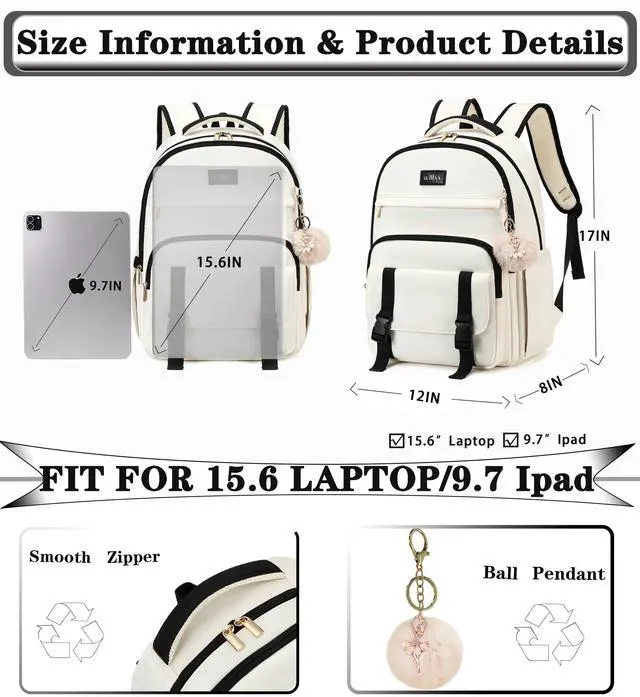Medium Size & GiveawayThe girls school backpack dimensions of 17 x 12 x 8 inches (H x L x W), with a total weight of 1.7 lbs. The laptops bag with padded compartment sleeve fit tablet 14, 15, 16 inch. This bag sacks also along with fluffy ball key pendant makes the back pack more fashionable and unique. ^^ Waterproof