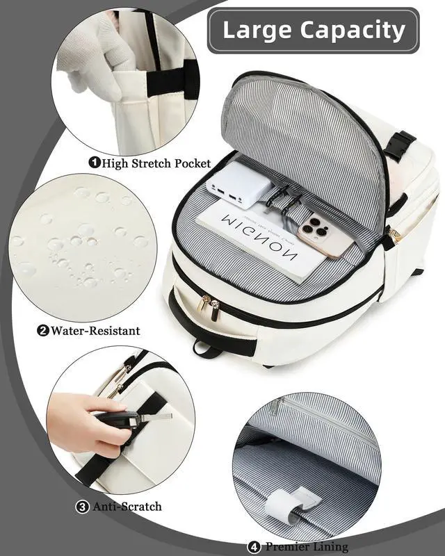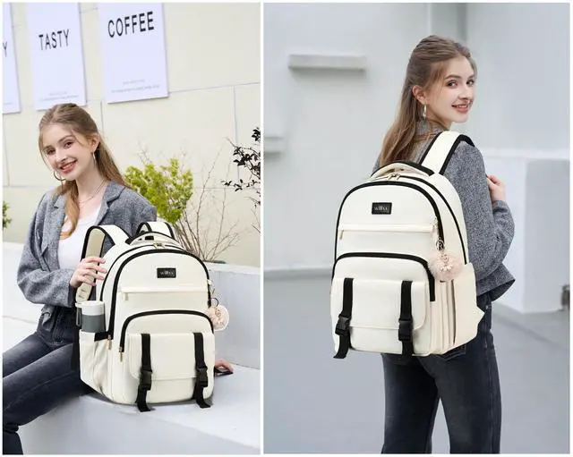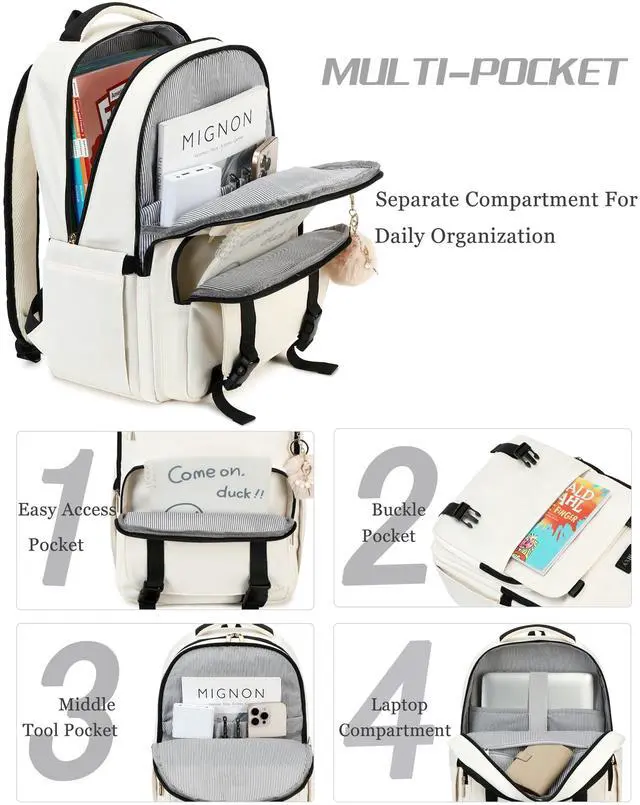 ^^ Large Capacity&Multi-compartments: The lightweight bookbags has 6 separate compartments and two side elastic pockets. Front 4 tool compartments come with multiple pockets to provide roomy space for necessities which make your items organized and easier to find; The main compartment of includes laptop padded sleeve and inner zipper pockets.