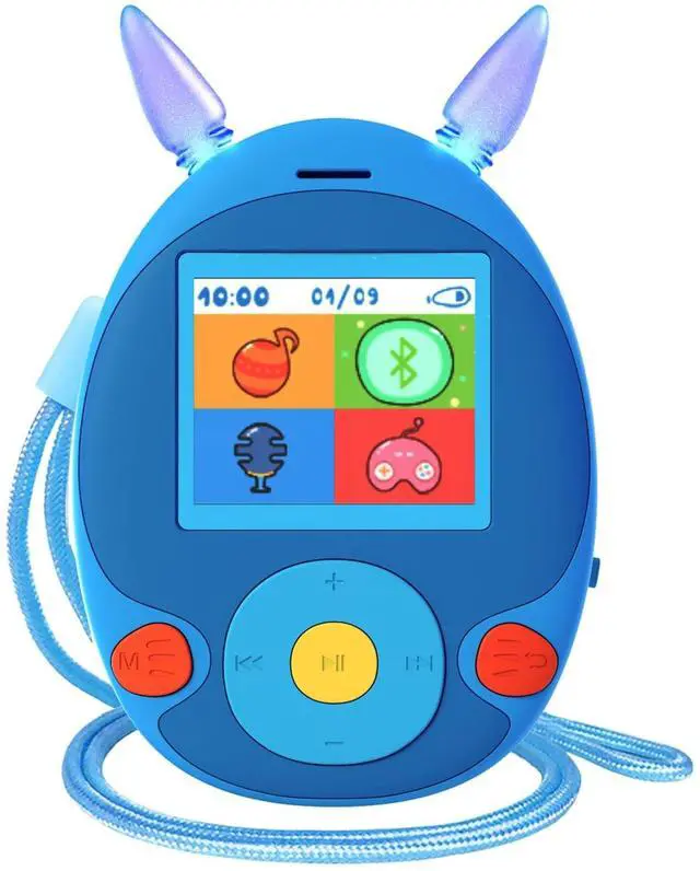 Kid-Friendly Design & Kids Proof DurabilityThis MP3 player for kids features a colorful and playful design that appeals to toddler, making it fun and engaging to use. It has 7 lovely physical buttons and light ears. The ears can flicker with blue light (three LED light modes). Constructed with durable materials, this MP3 player is built to withstand the rough and tumble of everyday play, ensuring it remains functional and intact even in the hands of active youngsters. ^^ Built in Bluetooth & high quality SpeakerThis MP3 Player allows kids to enjoy their favorite songs wirelessly, providing ultimate convenience and freedom of movement.