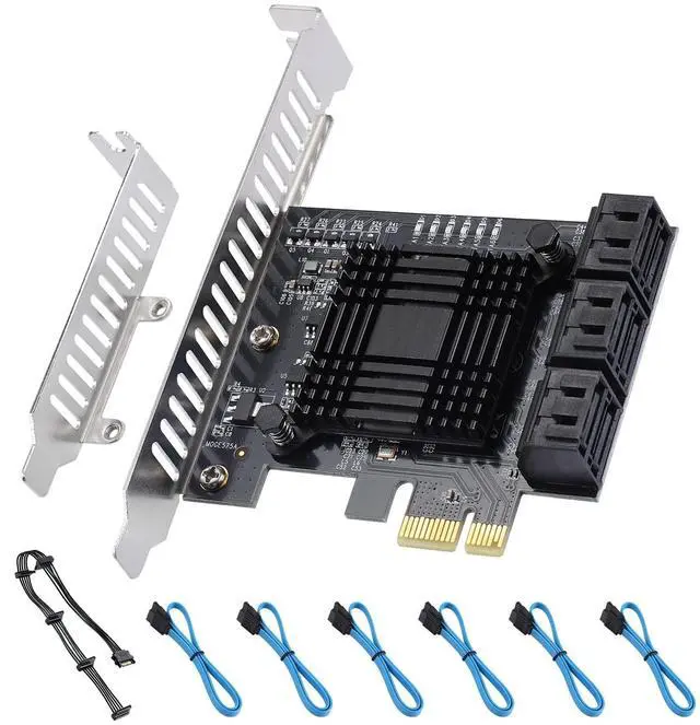 UNLOCK THE PERFORMANCE OF YOUR SSD WITH A PCIE SATA CARDACTIMED PCIe Express 3.0 to 6-Ports Adapter opens the possibility to connect Multiple HDD/SSD to your computer at peak performance. ^^ A SIMPLE CONNECTION Simply plug and play style setup. Install a hard drive to this component. RAID Support, Massive support of up to 96TB of storage. ^^ POWERFUL CHIPSET & ADVANCE HEATSINK Maximize your efficiency, stabilize your performance, and reduce error rate with ASM1064 & JB575 chip. Also, optimized cooling with aluminum heat transfer and maximize the effect of heat dissipation with a Heat-Sink.