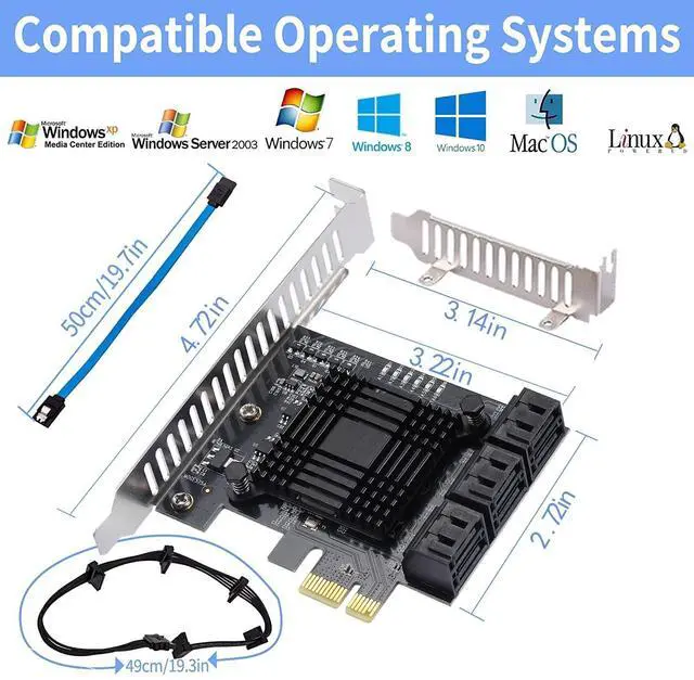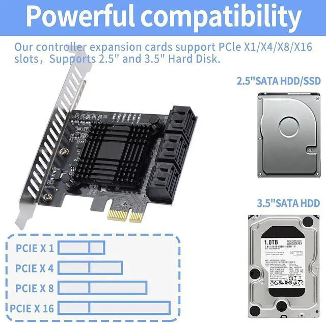^^ EXTENSIVE COMPATIBILITY Fully COMPATIBLE with X1/ 4X/ 8X/ 16X Slots on the mainboard and with compatible with both 2.5 SATA HDD/ SSD and 3.5 SATA HDD. Compatible with LINUX, Windows XP, and newer, MAC OS, and others. ^^