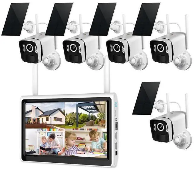 All in One Security SystemZHXINSD solar security camera system equiped with 10 inch monitor(not touch screen). Easy set up and use, all the cameras are paired before shipping. Wireless cameras for home security. Priority security system for family, office, store, warehouse.