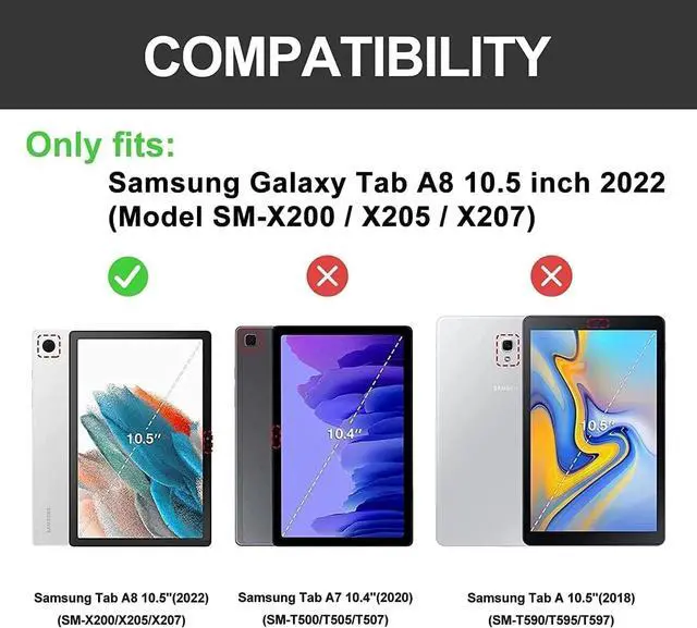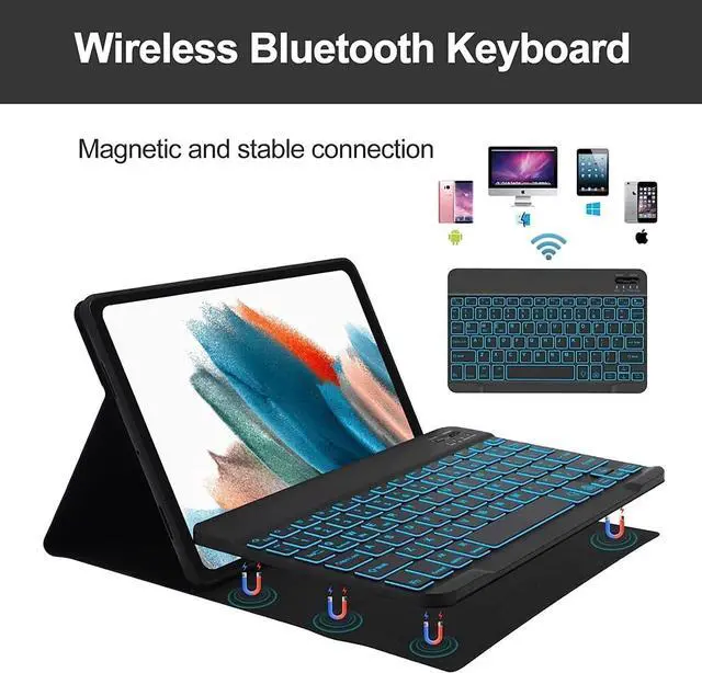 Package Contents: 1 x Samsung Galaxy Tab A8 Keyboard Case( Tab let are NOT INCLUDED. )1 x Bluetooth Keyboard2 x Micro USB Charging Cable1 x User Manual