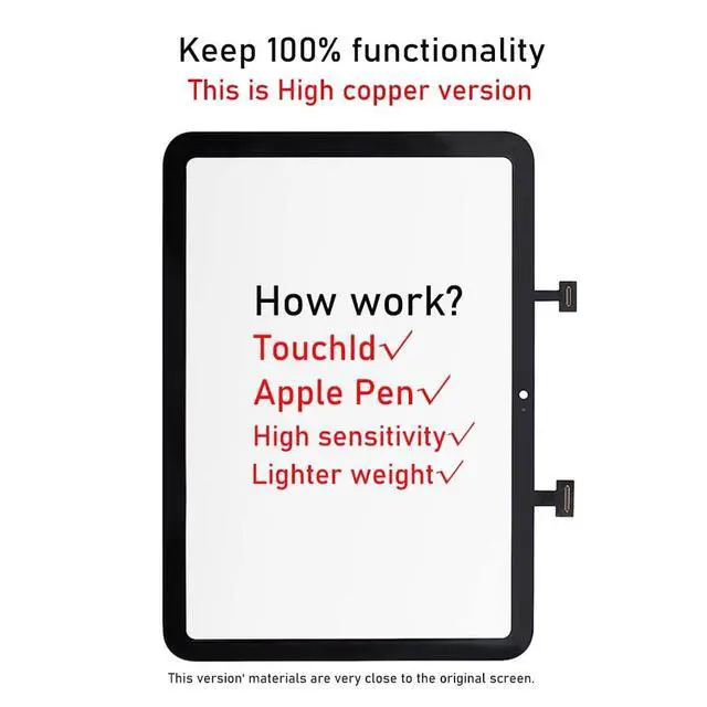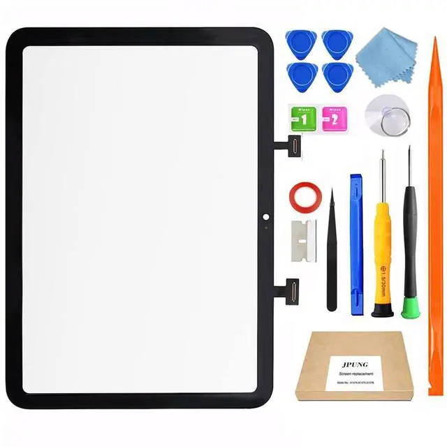 Includes: x1 Black IPad 10 2022 Glass Touch Screen Replacement x1 Camera Bracket x1 Microfiber Cloth x1 Prep Pad x1 Magnetic Philips Screwdriver x1 Metal Spatula/Scraper x1 Strong Suction Cup x6 Triangle Opening Tools x1 Pry Opening Spudger x1 Black Spudger x1 Tweezer x1 instructions