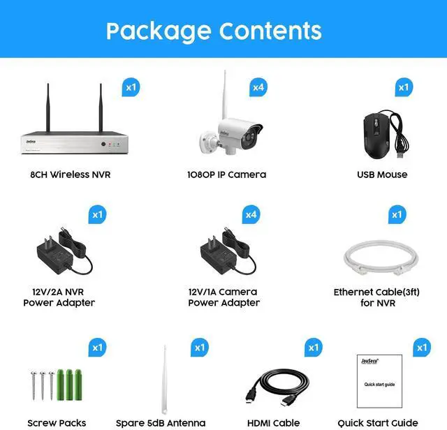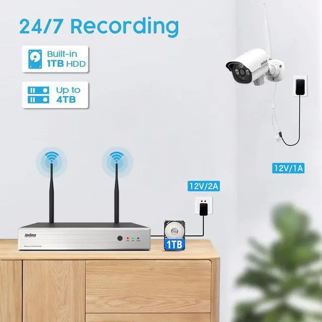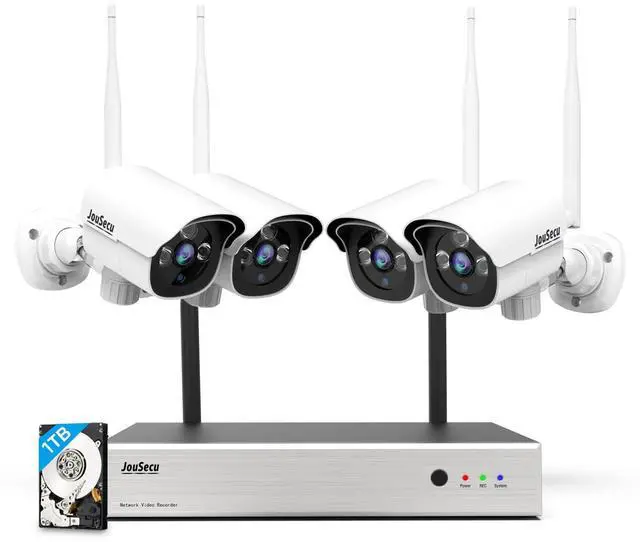 JouSecu 1080P Security Camera System Wireless with 1TB Hard Drive, Plug and Play Upgrade 8CH Video Surveillance NVR Kit with 4pcs HD Bullet IP Camera for Home/Store/Office, Night Vision Waterproof