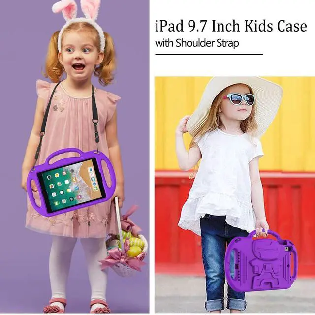 Air (Model: A1474 A1475 A1476) ^^ Cute Robot Pattern designed at the back as a foldable kickstand with detachable strap, perfect to hang it on the car headrest, enjoy hands-free entertainment on a road-trip ^^ Precise Openings - iPad 9.7 case gives easy access to buttons, ports, and cameras, NO need to remove the case for charging or taking photos ^^ Great for the Entire Family - Durable lightweight shockproof iPad 9.7 inch case comes in a series of enjoyable bright fun colors, great for both kids and adults ^^ Shop with Confidence - If the item you've received is defective in any way, don't hesitate to e-mail us for free replacement or refund