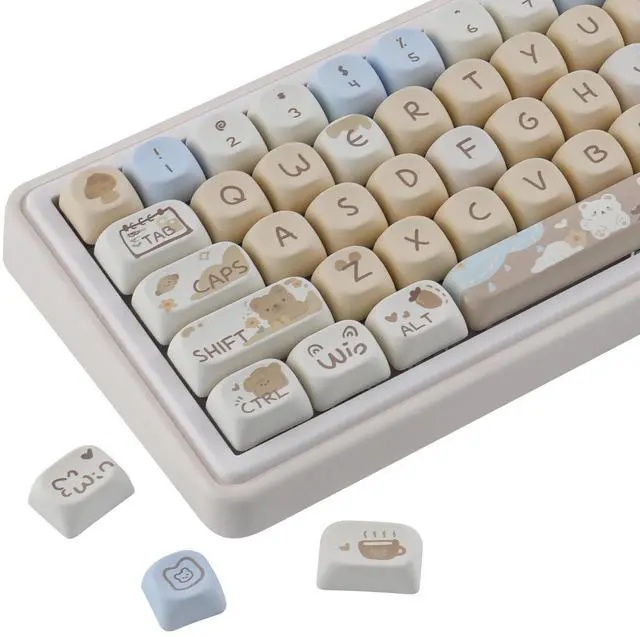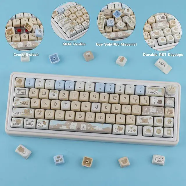 Unique DesignCute cat theme, with a large number of personalized clomplement keys, you can DIY different styles of keyboards according to your own ideas, making your mechanical keyboard unique ^^ MOA KeycapsThis custom PBT keycap set features MOA profile design that provides a more comfortable height and ergonomic curvature when typing, designed for the ultimate typing experience, ensuring long term comfort without fatigue and durability when working or gaming, and the keycaps feel great to the touch, so you can enjoy every click ^^ Durable PBT KeycapsThe keycap is made of molded double-layer pbt material pressed and will not fall off easily, due to the special production process of the keycap, so the surface of the keycap will appear in the injection molding holes, does not belong to the quality problem ^^ Keycaps Set CompatibilityThe custom keycaps contains 132 keys, fit most 60%/65%/75%/80%/96%/100% (61/64/68/75/84/87/96/980/104/108) US layout mechanical keyboard ^^ Custom Keycaps Warm TipsYou can get 1 x132 keycap set (with key puller) with 90 days worry-free warranty.
