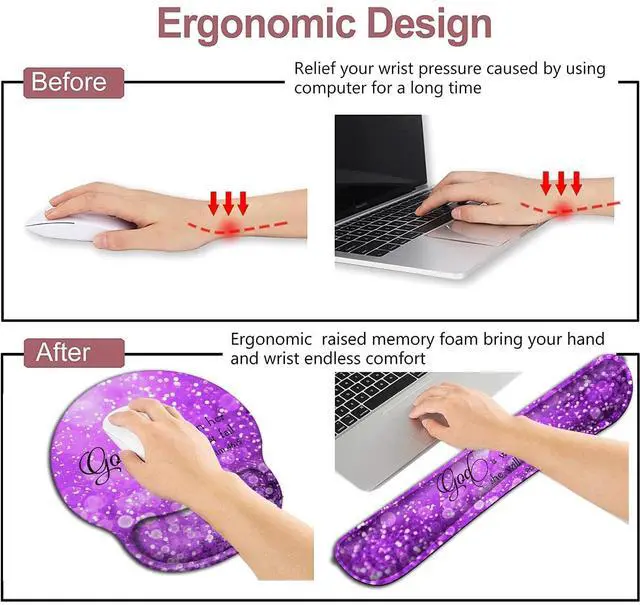 Gel PadFilled with excellent cooling gel. Soft and comfortable gel padded pad. When your hand leaves it, it will slowly rebound without deformation. This wrist protector mouse pad is ergonomically designed to protect your wrist joints, reduce wrist fatigue and provide maximum comfort and support for your wrist. ^^ Ultra-smooth SurfaceHigh line count and smooth surfaces optimize optical and laser sensors for faster and more accurate mouse tracking. ^^ Non-Slip Rubber BaseHigh-quality non-slip rubber base, the back of the mouse pad can firmly grasp the desktop, compared with the normal mouse pad, the friction resistance is increased by 99%, it can prevent any accidental movement of the mouse pad while typing.