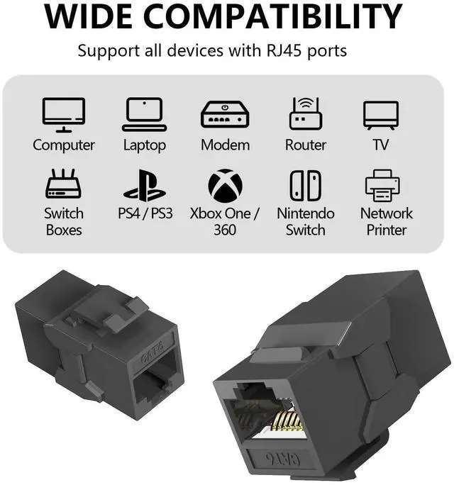 Theyre perfect for home networking, office connections, and audio/video transmission. Each package includes 25 RJ45 Cat6 Keystone Couplers and is backed by a 12-month warranty, providing peace of mind and dependable quality.
