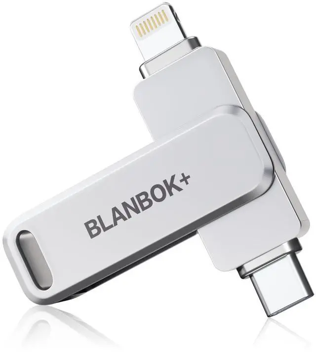 BLANBOK+ MFi Certified 256GB iPhone Photo Stick, USB Flash Drive for Photo/Video Backup, High-Speed Thumb Drive Compatible for iPhone/iPad/Android/PC (Silver)