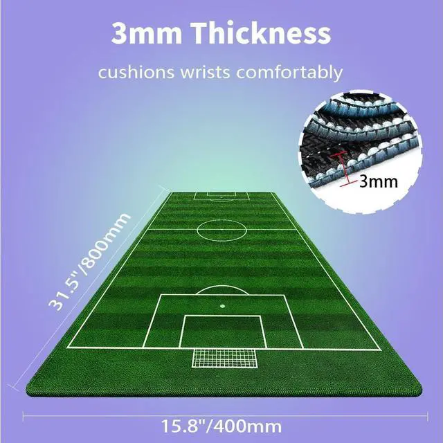 Ultra-Large Size ( 31.5" x 15.8" )Perfect for gaming setups or workspaces, covering your desk and providing ample room for keyboard, mouse, and accessories. ^^ 3mm Thick & ComfortableCushioned thickness ergonomic wrist support reduces fatigue during extended computer sessions, smooth fabric surface reduces wrist strain. ^^ Natural Non-slip Rubber BaseEco-friendly anti-slip grip keeps mat firmly in place during intense use. ^^ Ultra-Smooth Fabric SurfaceOptimized fabric surface ensures precise mouse tracking & low friction for both work and speed gaming. ^^ Stitched Edges for DurabilityExtra-large desk mat with premium stitched edges to prevent fraying, it's a long-lasting gaming mouse pad/desk mat.