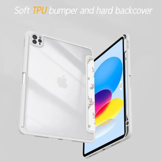 A2233Please note that: Before purchasing, please verify the model number "AXXX" in small print on the back bottom of your iPad. This simple and stylish iPad case is made of three materials. The front of the tablet case is made of soft microfiber, the bumper is made of soft TPU, which makes it easy for you to install and remove the iPad without scratching it, and the bottom of the case is made of hard acrylic material, which is less prone to yellowing than the traditional clear silicone case. Its shockproof corner design can effectively protect the tablet from scratches when dropped. What are the advantages of this tablet case? In addition to the excellent quality, there are several features. First, it has a stand function, which is convenient for you to easily watch videos or type at the moment of study, work or entertainment. Secondly, the auto Sleep/Wake function helps reduce battery loss and extend the standby time. Finally, the built-in Pencil Holder in the tablet case makes it easy to carry your pencil and device with you at all times without worrying about losing your pencil.