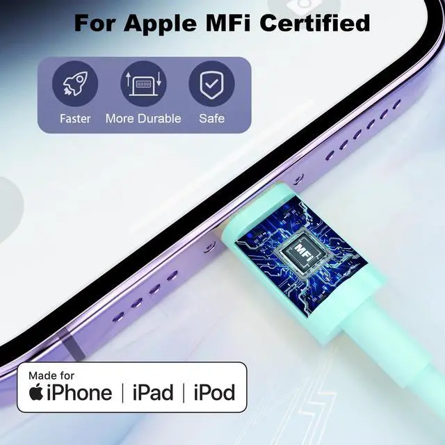 MFi Certified for iPhone Charger Fast Charging: The Lightning cables are MFi certified, ensuring 100% compatibility with any Lightning device, including fast charging for your iPhone. They support the current iOS version and all future updates, so you can be sure you're getting the best possible charging experience.
