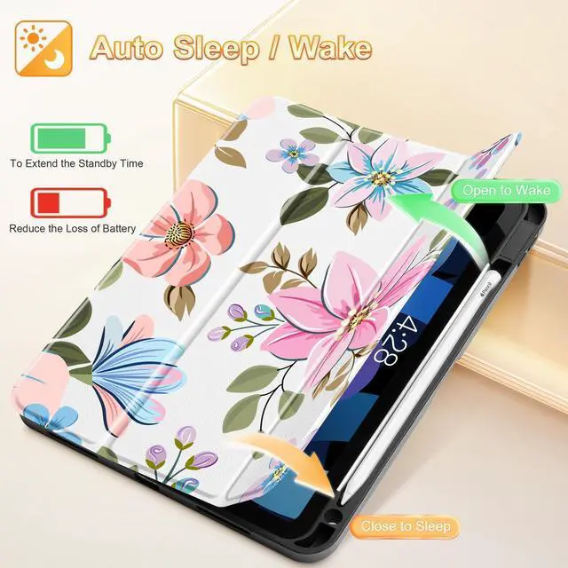 Use: Featuring a trifold design that allows for two positions: 65 movie mode can act as a screen stand; 30 input mode acts as a keyboard stand. Easy to installThe soft silicone protective sleeve is easy to install and won't scratch your iPad. Multi-pattern ChoiceThe unique patterns created by the designer make your iPad unique and fashion, a perfect gift to your friend or family. Smart CoverProvides auto sleep/wake function with built-in magnetic strip. Precise CutoutsNecessary cut-outs for speaker, lighting port, camera and flash, easily access to all buttons without remove the case. Package include1 xTuiklol PU leather Protective Case for iPad Air 11 inch 2025 2024 Release Generation Air 7th / 6th / iPad Air 10.9 inch 2022 2020 Release Generation Air 5th / 4th.