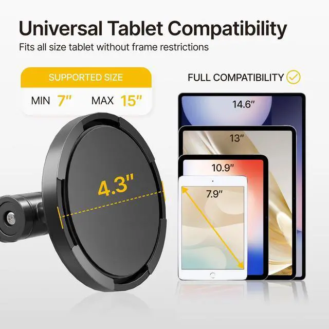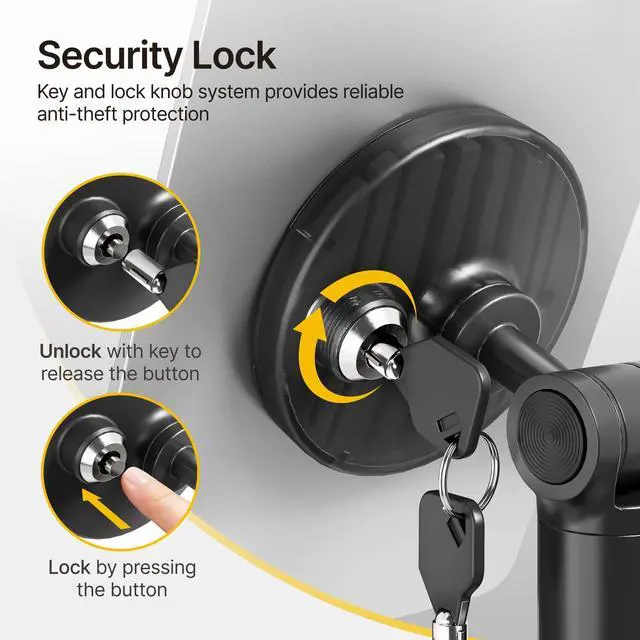 ^^ Strong Double-Side Adhesive: The ultra-high-adhesive mounting plate ensures a stable connection between the tablet and the bracket. Once the security lock is engaged, any attempt to forcibly remove the tablet may result in its breakage and render it unusable, providing effective theft prevention.