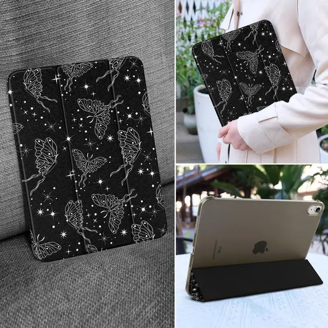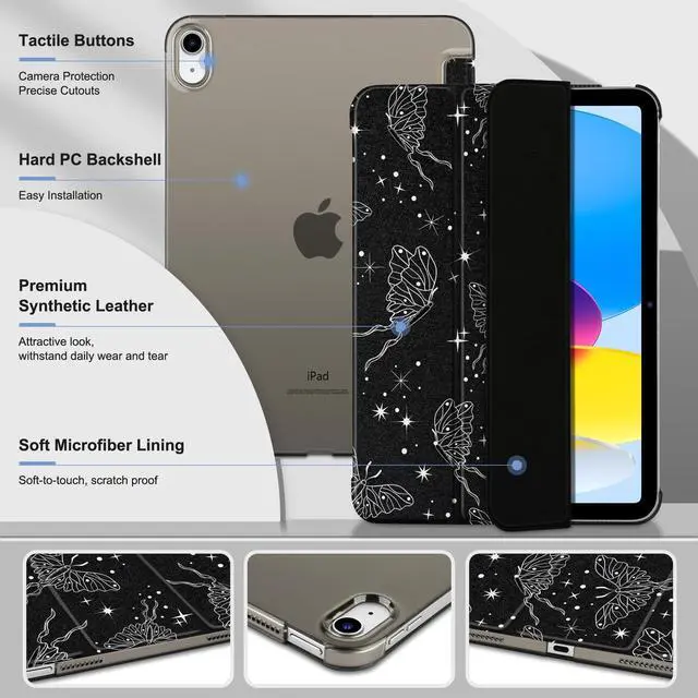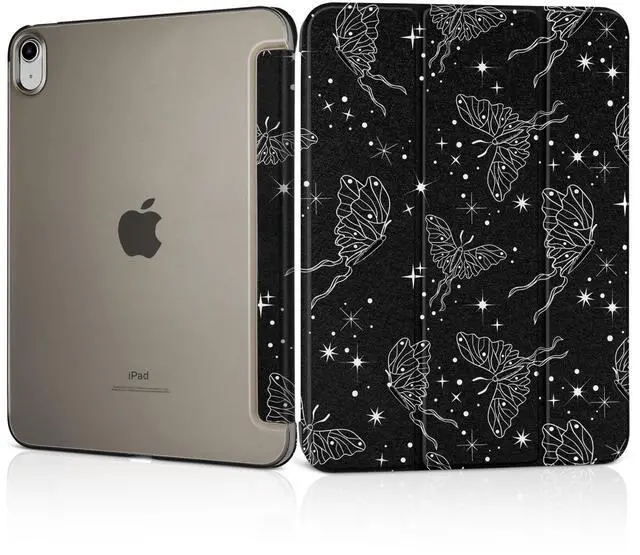 MEEgoodo for iPad A16 11th Generation Case 2025 11 inch, Tablet Cases for iPad 10th Generation 2022, Tablet Cover with Silk Texture & PC Clear Back Cover, Butterflies & Space