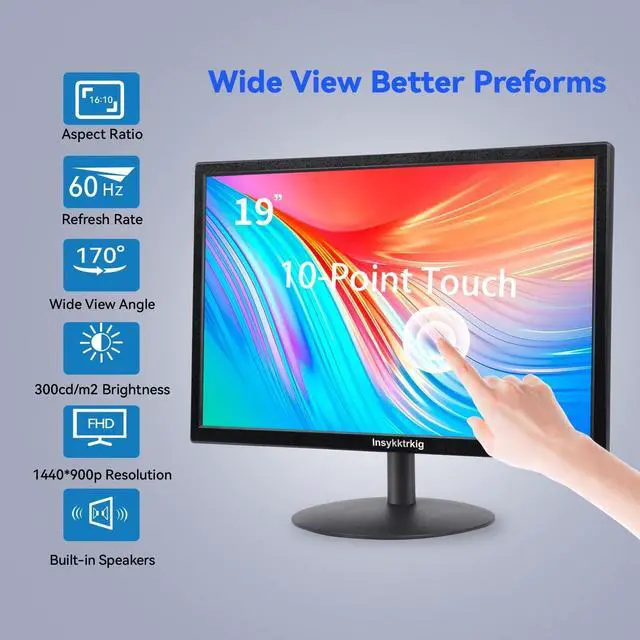 Points TouchScreen Monitor: Use multiple fingers to zoom in & out of images and make notes and notes on images or documents no driver required and no need stylus. The touchscreen is designed for smooth navigation and interaction with content, as well as control of the display. ^^ Fast Refresh Rate & 5Ms Response Time - With a 60 hertz refresh rate and a 5 ms response time, 19 Inch Monitor provides a smooth and seamless experience, making it perfect for gamers and anyone who needs a fast and responsive display. ^^ Adjustable Stand & VESA Mount Compatible - The stand is adjustable, with a 5 degree forward tilt and a 15 degree backward tilt, making it easy to find the most comfortable viewing angle. 19 inch monitor is compatible with VESA 75*75mm mounts, which allows you to easily mount it on a wall or a monitor arm for a more ergonomic setup. ^^ 19 inch PC monitor has a 170 Wide degree viewing angle, which ensures that the display looks great from almost any angle, making it perfect for students who need to share their screen with others.