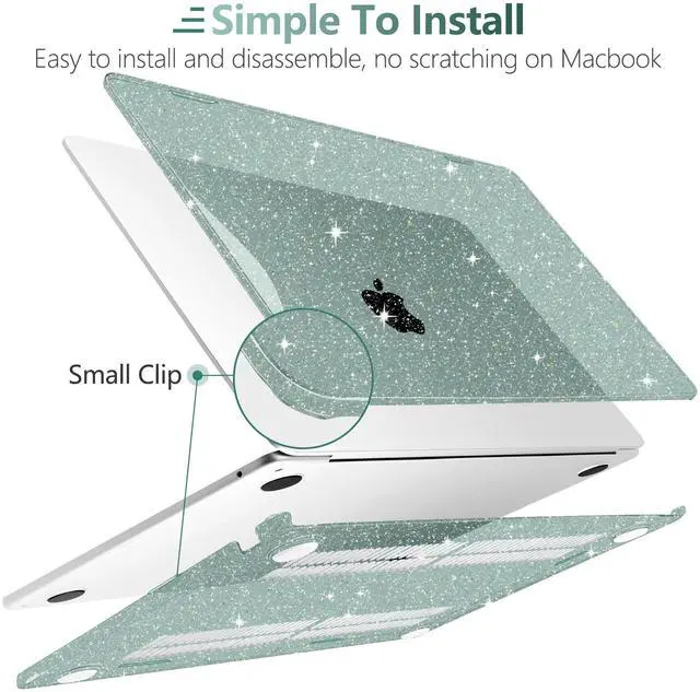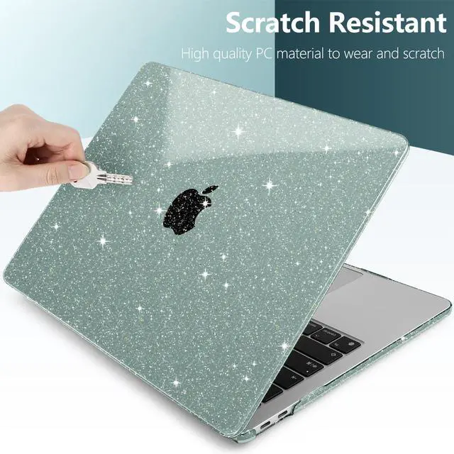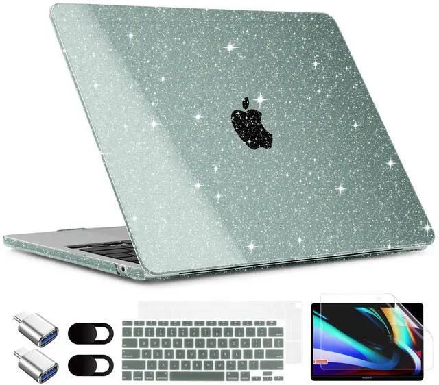 TWOLSKOO for MacBook Air 13.3 inch Case 2021-2018 M1 A2337 A2179 A1932 with Retina Display, Plastic Hard Shell Case with Keyboard Cover & Type C Adapter 2 Pack & Camera Cover, Glitter Midnight Green