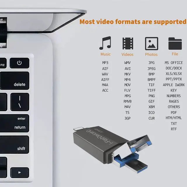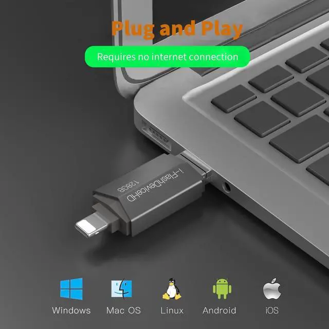 Lightning Port: read 24MB/s, write 19MB/s. Free up your device space quickly will be easily achieved by using the usb flash drive. ^^ Plug and StayYou can memory stick for iPhone playback the videos/music directly from external memory stick on the flash drive 128 gb. All shots taken from the in-app camera get stored automatically in real-time to the iPhone photo stick. And iPhone usb for photos/music is also a great tool for traveling photographers editing on iPad. ^^ Watch Video Directly Easily transfer photos and videos between iPhone, iPad, PCs and Mac Computers Quickly free up memory on your iPhone and iPad.