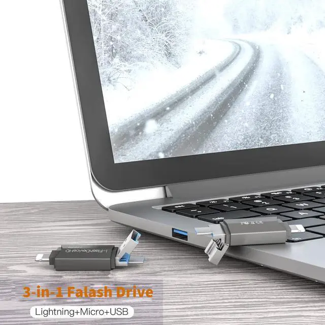 Memory Stick has 3 ports: iOS(Compatible with phone/Pro/Plus/Max, Ipad/Air/Mini, iPod), USB 3.0 (Computers with windows 7 / 8 / 10 / Vista / XP / 2000 / ME / NT Linux and Mac OS, Compatible with USB 3.0 and below), Micro(Owns Micro USB Interface for Android phone with Micro USB interface Samsung Galaxy S6/ S7/ S4/s5/ / S3 / S2 /Samsung A7.
