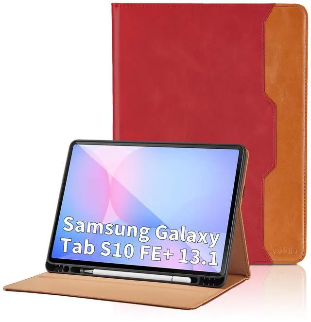 CompatibilityDesigned for the Samsung Galaxy Tab S10 FE+ 2025 13.1 -Inch (Models: SM-X620/SM-X626B). NOT compatible with any other models. Please check your model number before the purchase. ^^ Full ProtectionThis samsung galaxy tab s10 fe plus case adopts premium synthetic leather material to protect your tablet from scratches, dust, or any other daily damage. Come with elastic hand strap help secure the front cover with the back shell for outstanding full protection when close the front cover. ^^ Hand StrapThis samsung galaxy s10 fe+ tablet case comes with a hand strap that makes it easy to hold the tablet in one hand. ^^ Pen HolderThis samsung galaxy tab s10 fe+ case built-in S pen holder securely carries and protects your S pen, and the outer side is also equipped with a stylus loop so you can easily work and study anywhere. ^^ Multi-FunctionThe samsung galaxy s10 fe plus case provides two anti-slip slots which able to adjust most comfortable angles for watching movies or typing; large front document card pocket for notes, cash, and cards etc.