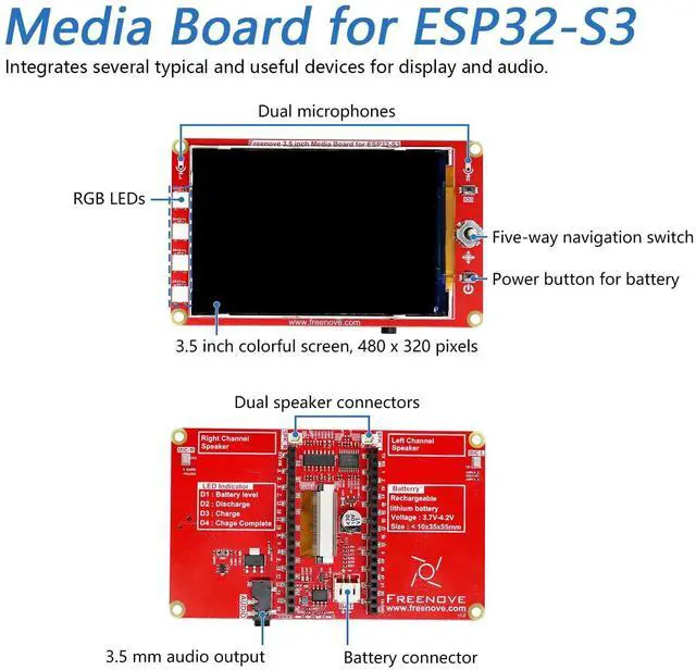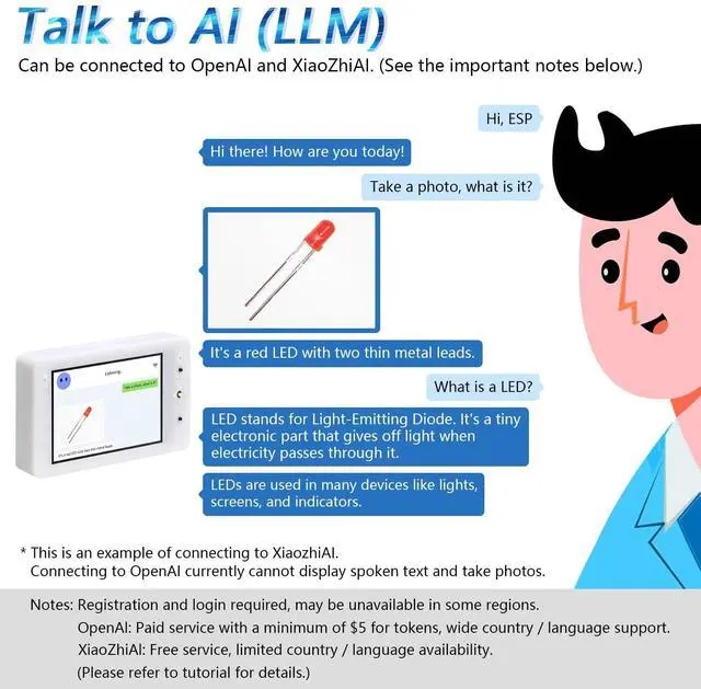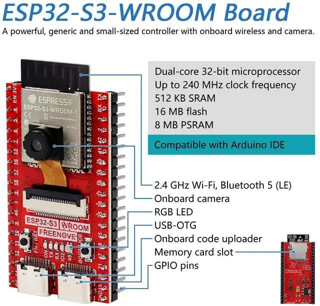 Overview: ESP32-S3-WROOM is a small but powerful controller with onboard wireless and camera. This kit helps you learn ESP32-S3, LVGL GUI library and connection with AI (LLM). We provide free technical support to help you with any questions and problems.