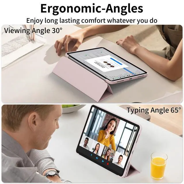 Tri-fold Stand: The magnetic tri-fold cover can be easily folded into a stable stand, supporting 30 or 65 and horizontal and vertical positions, ensuring a comfortable angle for watching your favorite shows or taking notes with Pencil. Avoid joint pain, free your hands, and enjoy other ente