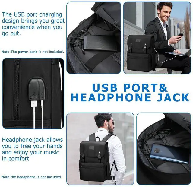 Charging Port Feature: Practical gifts and present for those who go to school, travel and work, a must for school supplies travel accessories and laptop accessories. A theft proof pocket on the back could hold your phone, wallet or small items, add more safty to keep your valuable items. External pockets on both sides are made of Elasticized Mesh, expands to secure various size water bottles and compact umbrella. Backpack with charge port offer a quick access to charge your phone, very convenient and stylish 100% Brand New and made of High Density and Water Repellent Polyester Fabric, not easy get wet and ensure long lasting usage.