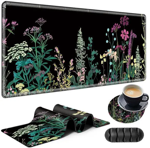 What You Get This X-Large mouse pad ( 31.5 x 11.8 x 0.08 inches ) is large enough to fit your gaming mouse, full size mechanical keyboard and other desk items. It also acts as a writing pad. Come with a Matching Cup Mat and Black Silicone Cable Clip Holders. A perfect gaming mouse pad combo for well-organized desk space. ^^ Superior Control Surface Large mouse pad adopts textured micro-weave cloth surface on cover with enhanced command to provide the excellent balance between glide and control. The performance-tuned surface optimizes mouse tracking accuracy for both optical and laser sensors.