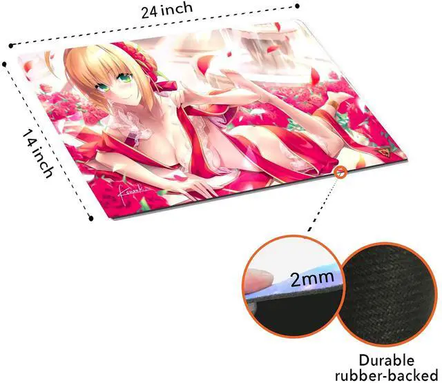 Dimensions: 14" x 24", Thickness: 2mm ^^ Durable rubber-backed play mat ^^ This playmat also can be used as keyboard pad, mouse pad, work mat and card mat