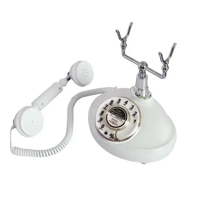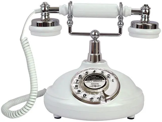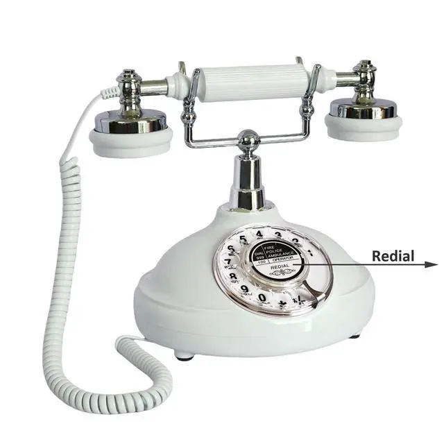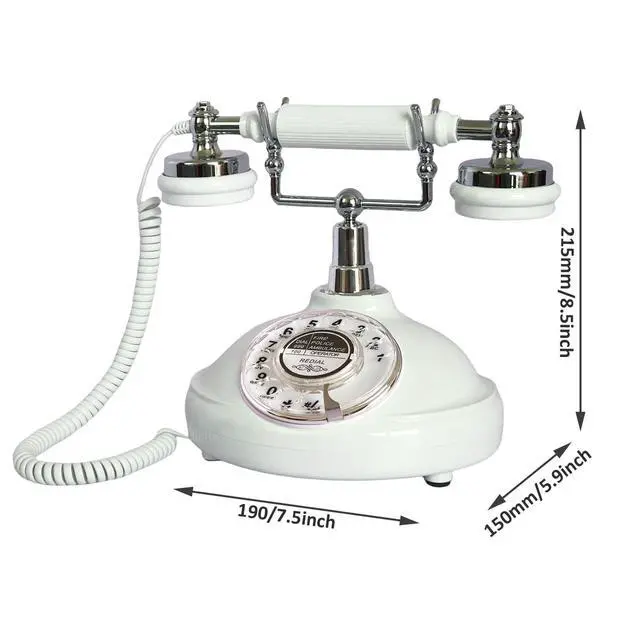 White Rotary Antique Classic Vintage Corded Landline Phone Home School Movie DecorOld Fashioned Retro rotary dial StyleThis is a retro-styled 1930s European-style telephone. The high-quality microphone and speaker in the classical receiver handset assure excellent voice quality. This high quality retro telephone is ideal for home, office, hotel, shops or other places. It is a pretty real phone that can truely make and answer calls. Not only practical but also can be used as an ancient decoration. Instruction1. Put the telephone in flat area, keep it stable. 2.