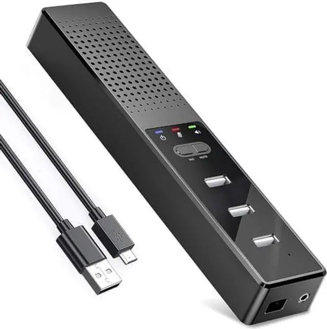 The product is characterized by a wide range of sound field, powerful low frequency, clear high frequency, etc. The speaker microphone computer enables a great listening experience and enhances movie enjoyment with its high definition stereo sound. ^^ 360 Omnidirectional Voice PickupThe conference speaker features a 360omnidirectional Voice Pickup function that is equipped with 4x microphones array and intelligent Hi-Fi speakers. It can pick up clear audio up to 16ft range and amplify sound, providing a richer and fuller sound compared to regular speakers. This ensures that all 5-6 participants sitting in various corners of a large conference room can hear every single word without missing any details.