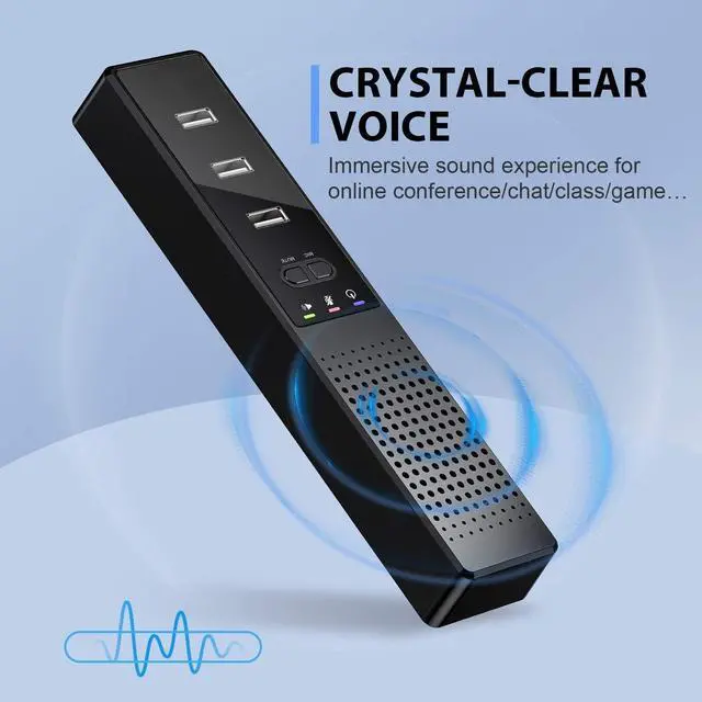 3-in-1 USB Computer Speaker with MicrophoneCombine speaker, microphone, usb hub, audio port, and control buttons in one. This USB computer speaker has a built-in high-performance microphone. Conduct professional conferences with our speaker phone. It has everything you'll need to sound good. This soundbar features a 3-port USB hub that can be connected to devices with USB output. The extended 1.8 m cable allows for perfect setup and easy access to out-of-the-way ports. ^^ High Sound Quality The Cykvis usb speaker laptop features a fully antimagnetic design internal magnetic speaker and a state-of-the-art digital processing chip.