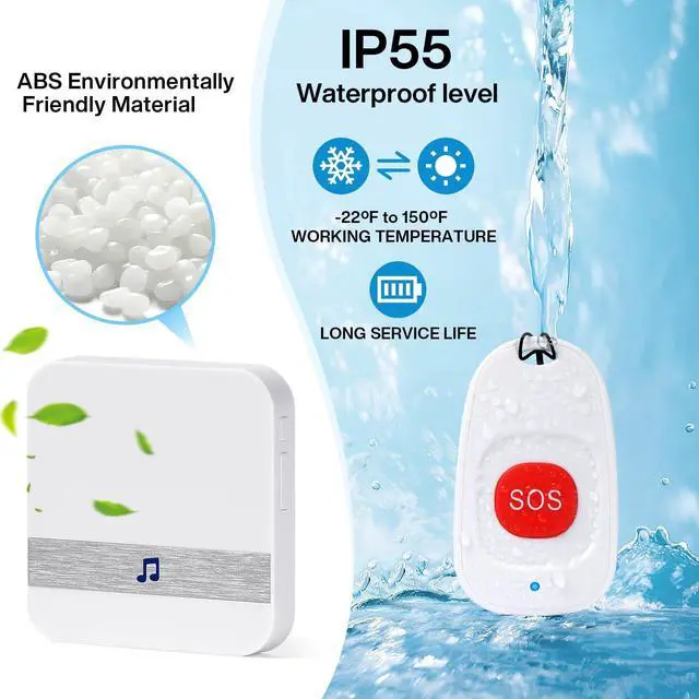 Transmitter/Push Call Button is Waterproof. Acceptable for Meal/Soup Splash. And Allow to be Installed in the Washing Room. ^^ Not Need To Yell To Catch Attention & LED Flash ---Wireless caregiver pager the idea is both for the Caregiver and Patient/ Elderly/ Pregnant woman/ Children while calling for help at home. Like the kitchen/washing room where is enclosed and noisy can be installed separately. Make sure the Patient/Elderly's call can be heard. ^^ Ideal Gift & 3 Year Free Replacement ---DoubleCare wireless caregiver pager is a brand after years of independent R&D and approved by FCC, CE, RoHS and other certificates, Very suitable for the elderlyIf you have any questions, please feel free to contact us