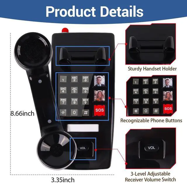 ONE-TOUCH DIALING: Our big button wall phone for seniors can record 3 groups of numbers, including 2 custom picture dials +1 SOS dials, convenient speed dials for seniors with poor memory and quick calls for emergency ^^
