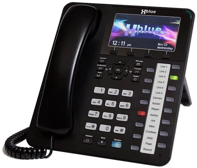 The X4040 IP Phone is specially designed to fully integrate and automatically connect to either the XBLUE X25 or X50 system. The X4040 features a large color display and has all of the most commonly used features pre-programmed on the phone. The colorful X4040 display enables you to quickly see Caller ID, Call Logs and the Phone Book. And, for quick feature operation, use the interactive LCD Navigation Keys. A Button for