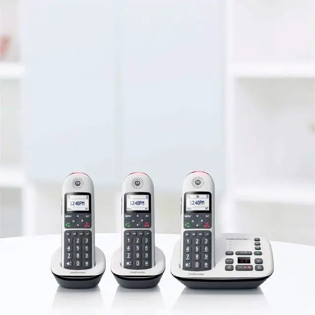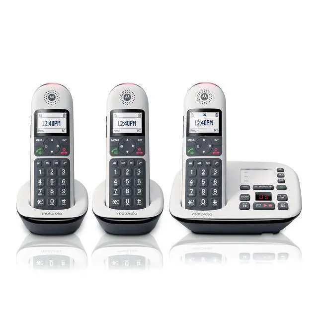 3-handset system for whole home coverageComes with three fully cordless handsets so you can place phones in different rooms and answer calls anywhere within range. The system can register up to four handsets to a single base for even more flexibility. ^^ Powerful call blocking up to 1000 numbersReduce nuisance calls with advanced call blocking that lets you store and block up to one thousand numbers. You can also block calls by call type so unwanted callers do not disturb your home. ^^ Digital answering machine with up to 30 minutes recording timeThe built in answering machine can store up to thirty minutes of incoming messages and memos.
