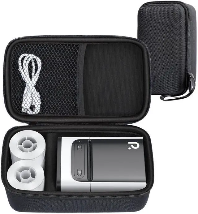 External dimension: 7.67 x 4.72 x 3.34 inch (L x W x H). POLONO label maker case is special design for POLONO PM220S label maker. The case features a sturdy and smooth zipper, ensuring easy opening and closing for storing the label printer sticker machine ^^ Simple and Practical DesignThe interior has a large storage space, which can effectively store at least one label printer, two rolls of label tapes and keep items in order. Equipped with a lanyard for easy carrying, the rubber bands inside with good elasticity, it is convenient to take label makers & printers out and put it in ^^ Full ProtectionPOLONO label maker case made of hard EVA material and smear proof PU leather, semi-water resistant, drop-resistant and easy to clear, soft velvet interior lining provides excellent protection for your label makers. Double layer protection makes you to take your label maker outdoors with greater peace of mind ^^ Widely Compatible Hard travel case compatible with POLONO PM220S label machine and Bluetooth label machine of the same appearance on the market. Mesh bag fit label print paper, USB cable and other accessories ^^ Portable&Widely UsageThe special design makes it possible to pack as much as possible into your case, even if it is small.