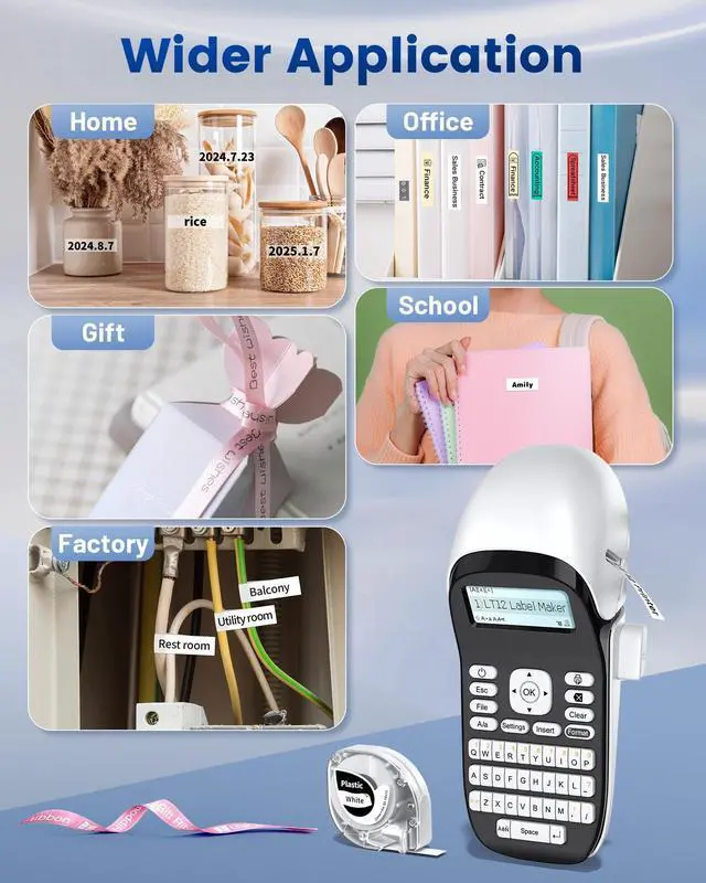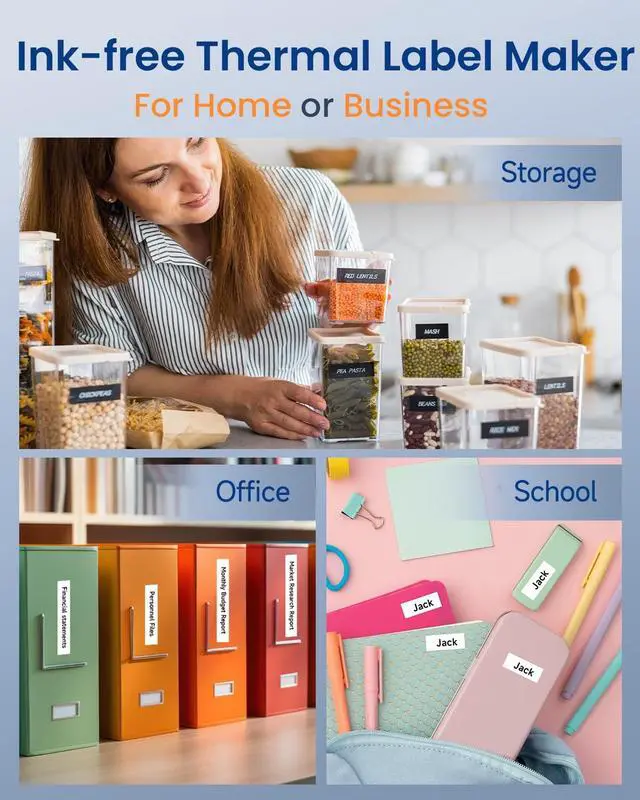 • Fast keyboard and Smart App Printing: Label maker machine you can quickly create and print labels by typing directly on the QWERTY keyboard, or use the Bluetooth app to create custom design personalized labels, perfect for home organization, garage tools, pantry items, office documents, and school supplies