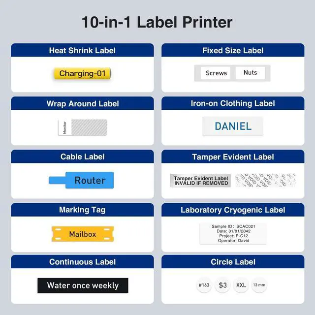 Multi-Type Label Compatibility: Supports heat-shrink tubes, continuous labels, fixed-size labels, and cable labels; ideal for home, garage, and office organization ^^
