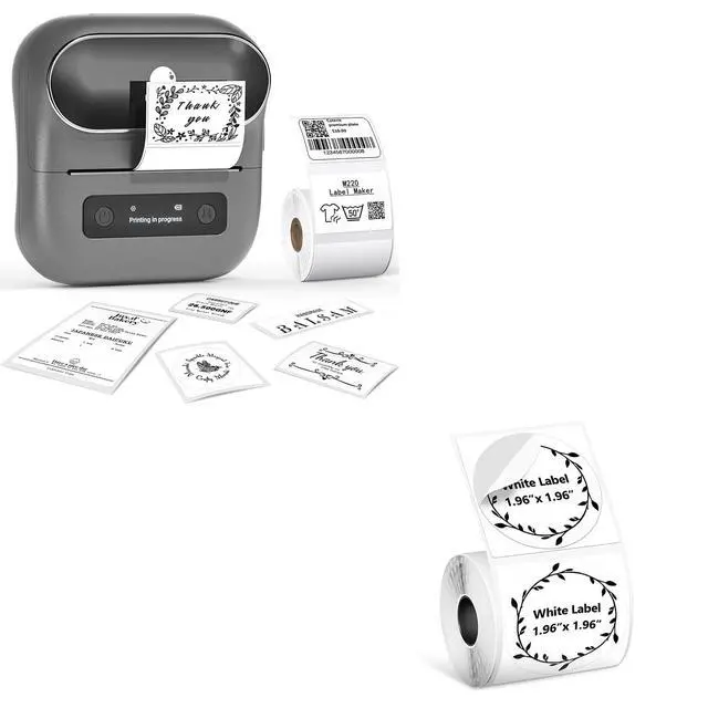 Phomemo M220 Label Maker & 1 Roll White Thermal Labels, 1.96" x 1.96" (50x50mm)