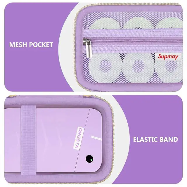 Supmay Carrying Case for ORGSTA S001 / for ORGBRO X1 Label Maker Machine, Portable Bluetooth Label Maker Storage Holder Bag with Mesh Pocket for Tapes, Typ-C Cable, Purple