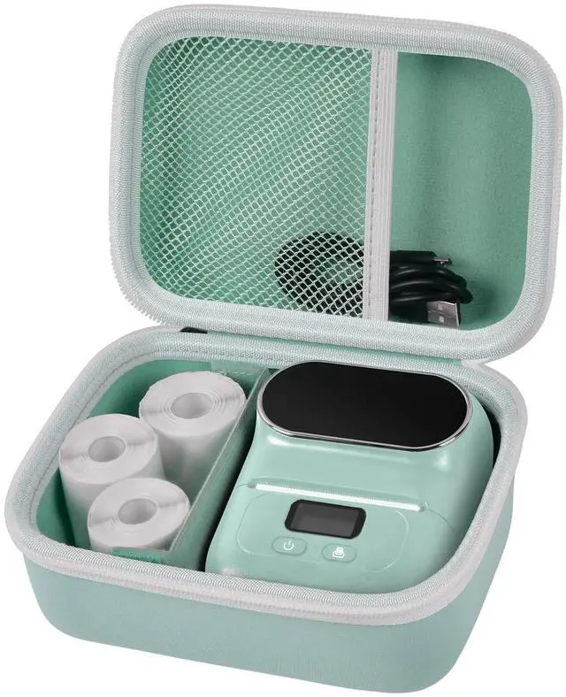 Portable label maker case fit for: Label maker organizer case fit for phomemo M110 / for Phomemo M110S Label Maker- Portable Bluetooth Thermal Label Maker Printer, bluetooth label printer case with mesh pocket, large enough for barcode printer, for phomemo thermal paper x 3, cable and other accessories, Size for phomemo label printer holder: 6.69 x 4.76 x 3.42 inches. (Bag only) ^^ Premium materials for phomemo label printer case provide full protection: Lable maker organizer bag is made of excellent eva material. Which is good shock-proof, and anti-skid. It also protects for phomemo m110 label from damaging, impacting, and falling. Qr code printer case with hard material for phomemo m110s printer has a good protective effect, Please be assured use because of the hard material of the shipping label printer bag. ^^ Reasonable internal design for phomemo label maker holder: Inner mesh pocket and individual divider for bluetooth label maker for phomemo m110 inside are practical. Internal mesh bag of m110 label maker case can accommodate your usb cables, extra batteries and other accessories. Independent dividing strip inside the bluetooth label printer box is separated from for phomemo printer paper, easy to adjust the divider to manage sticker mechine and printer labels. ^^ Mini label maker holder bag with compact and convenient design: Sturdy and smooth zipper is easy for opening and closing. Sticker printer holder can help organize and store label maker machine, label maker paper and accessories. Handy strap for label printer bluetooth case is portable. With sticker label maker case, you can make it easy to use your bluetooth label maker printer for Clothing, Jewelry, Retail, Mailing, Barcode anytime.