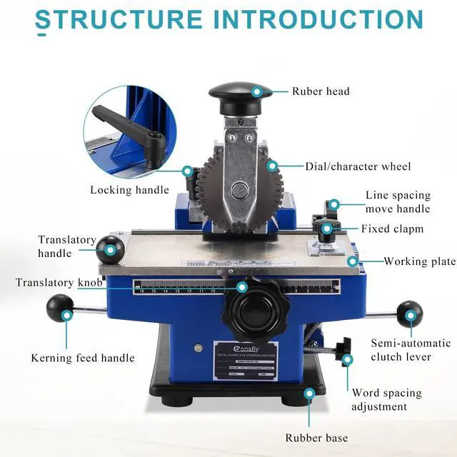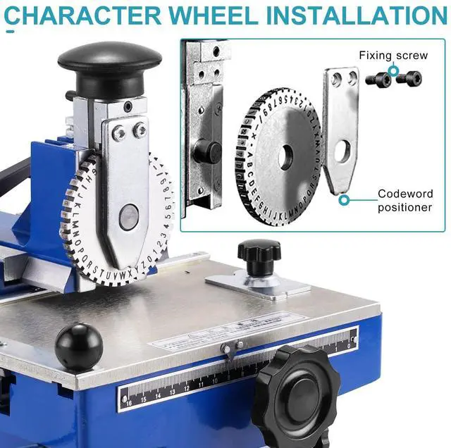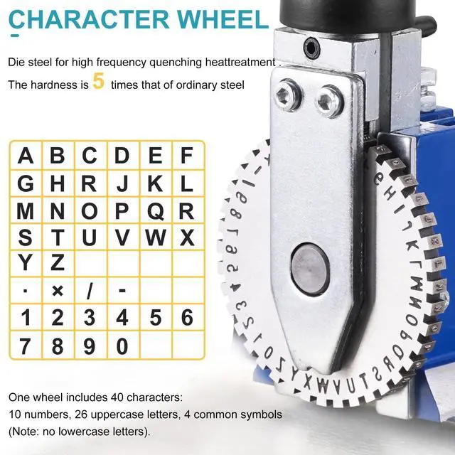 ^^ [Features]: The heat-treated steel wheel can be rotated to the required letters or numbers, and the typeface can be easily changed; the word spacing can be adjusted manually; different character heights can be realized by replacing the wheel.