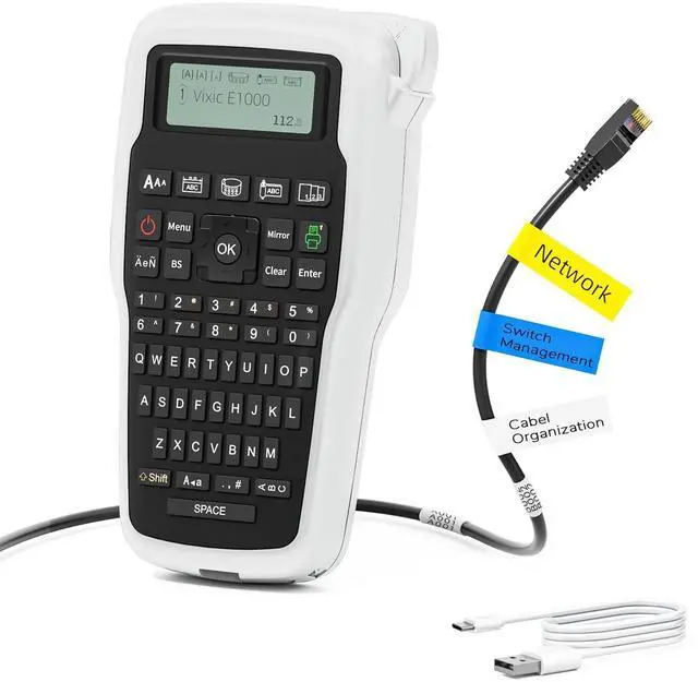 Laminated Durable Tape: Vixic E1000 portable label maker comes with laminated white tape that can withstand temperature, fade, water and chemical. Won't leave sticky paper behind when peeled off surfaces. Won't smudge or smear