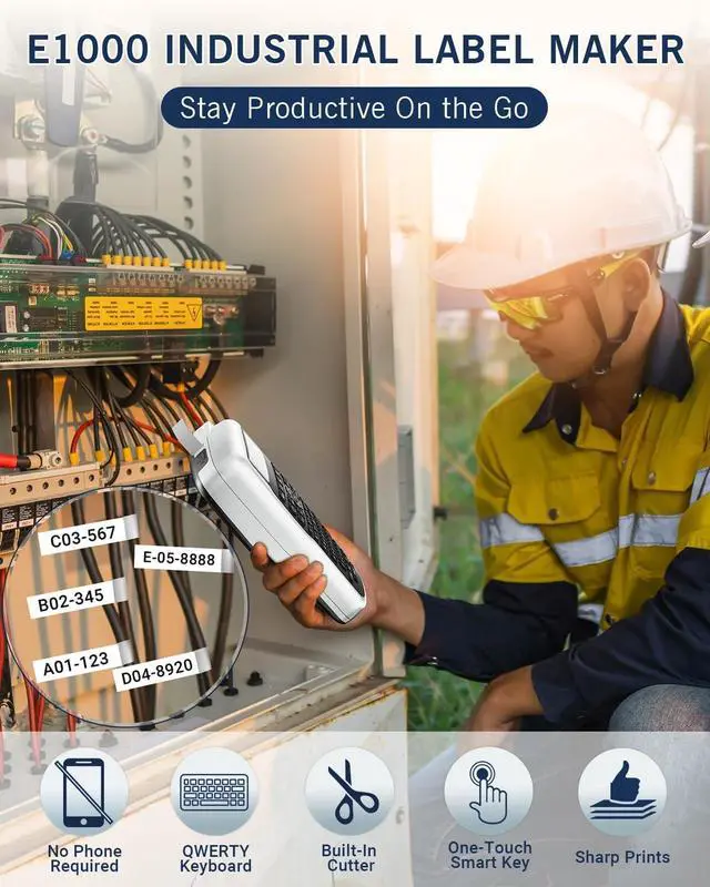 Quick Label Pinting: Familiarity with the QWERTY keyboard layout eliminates the need for learning new key placements, enhancing labeling productivity. No need to rely on any app to print labels, just grab and go! ^^ Wire Label Maker with 2