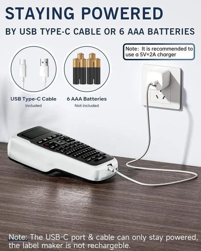 Power Supply Modes: E1000 label maker machine work with USB C cable (package included) to stay powered, it offers enhanced convenience compared to the traditional AC adapter. E1000 cable label maker can also work with 6 AAA batteries (package not included) ^^ Featuring Chain Print to