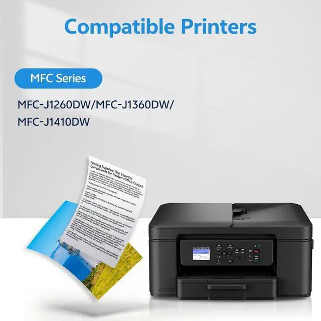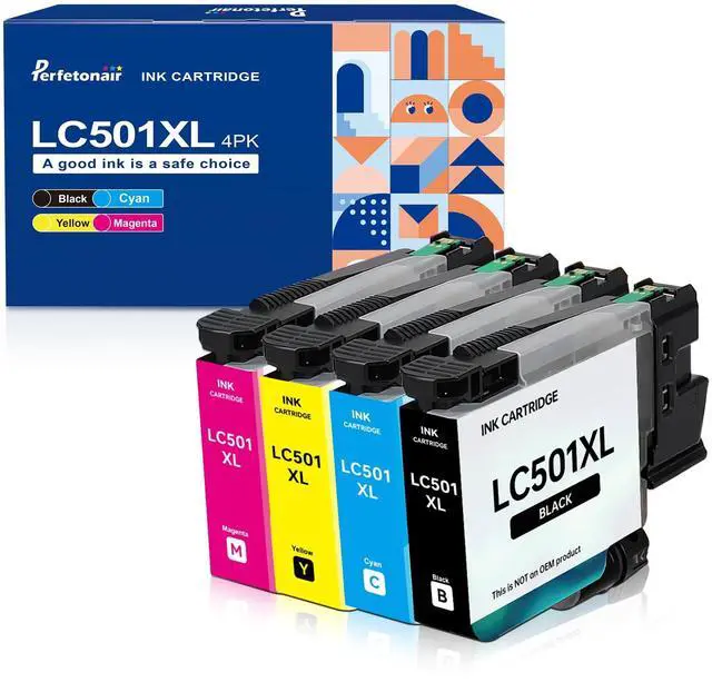 Compatible Printers: LC501XL ink cartridges replacement for Brother LC501XL ink cartridges compatible with MFC-J1260DW, MFC-J1360DW, MFC-J1410DW printer ^^ Package Contents - 4 packs of LC501XL ink cartridges combo pack for Brother printer, including 1 x LC501XL black, 1 x LC501XL cyan, 1 x LC501XL magenta, and 1 x LC501XL yellow ink cartridge. ^^ High Page Yield - Up to 500 pages per LC501XL black ink cartridge. Up to 500 pages per LC501XL color ink cartridge (A4 Letter, at 5 Percent Coverage) ^^
