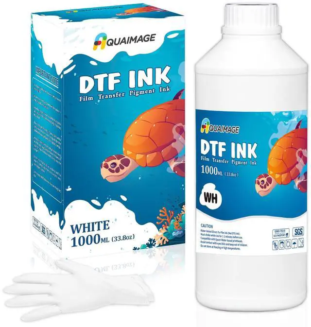 High quality inkAquaimage DTF White INK adopts German Solvent and Japanese Resin and Color Paste for unparalleled results. The ink has strong fluidity and high color fastness. white ink and color ink do not penetrate each other, and the white background can perfectly cover the color patterns. no line breakage and no head blockage, Washable and not easy to fade. ^^ Compatible with printersOpen the world of DTF printing with our inks. Work with Printers, A3 DTF printers, and wide format DTF printers. Head L1800, L805, R1390, 4720, I3200, XP600, DX7, DX5, 5113, 1430, TX800P400, P408, P640, P600, P608, P800, P5000, P6000R1800, R1900, R2000, R2400, 4800, 4880, 4900, 7880, 7890, R3000, R3880, F2000, F2100, F2200, P700, P900, XP-15000 and more ^^ Used for various fabricsUnlike other printing options, DTF White ink works seamlessly on any colored fabric and a wide range of materials.